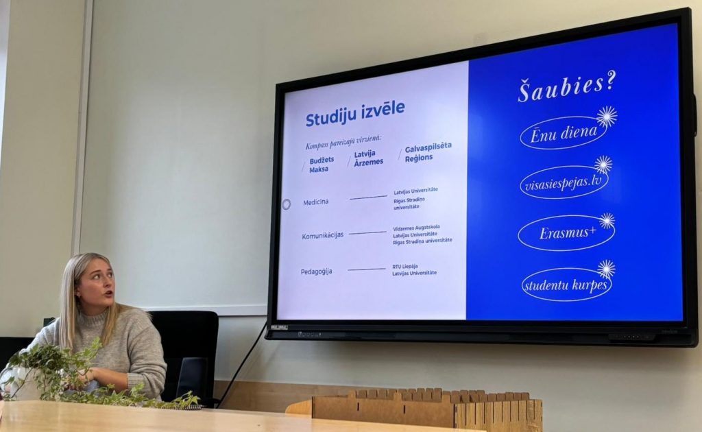 Viņa stāstīja par studiju iespējām Jelgavā, dalījās pieredzē un sniedza atbildes uz jautājumiem par nākotnes izvēlēm un jauniešiem pieejamajām stipendijām, tai skaitā arī Vītolu fonda stipendiju.