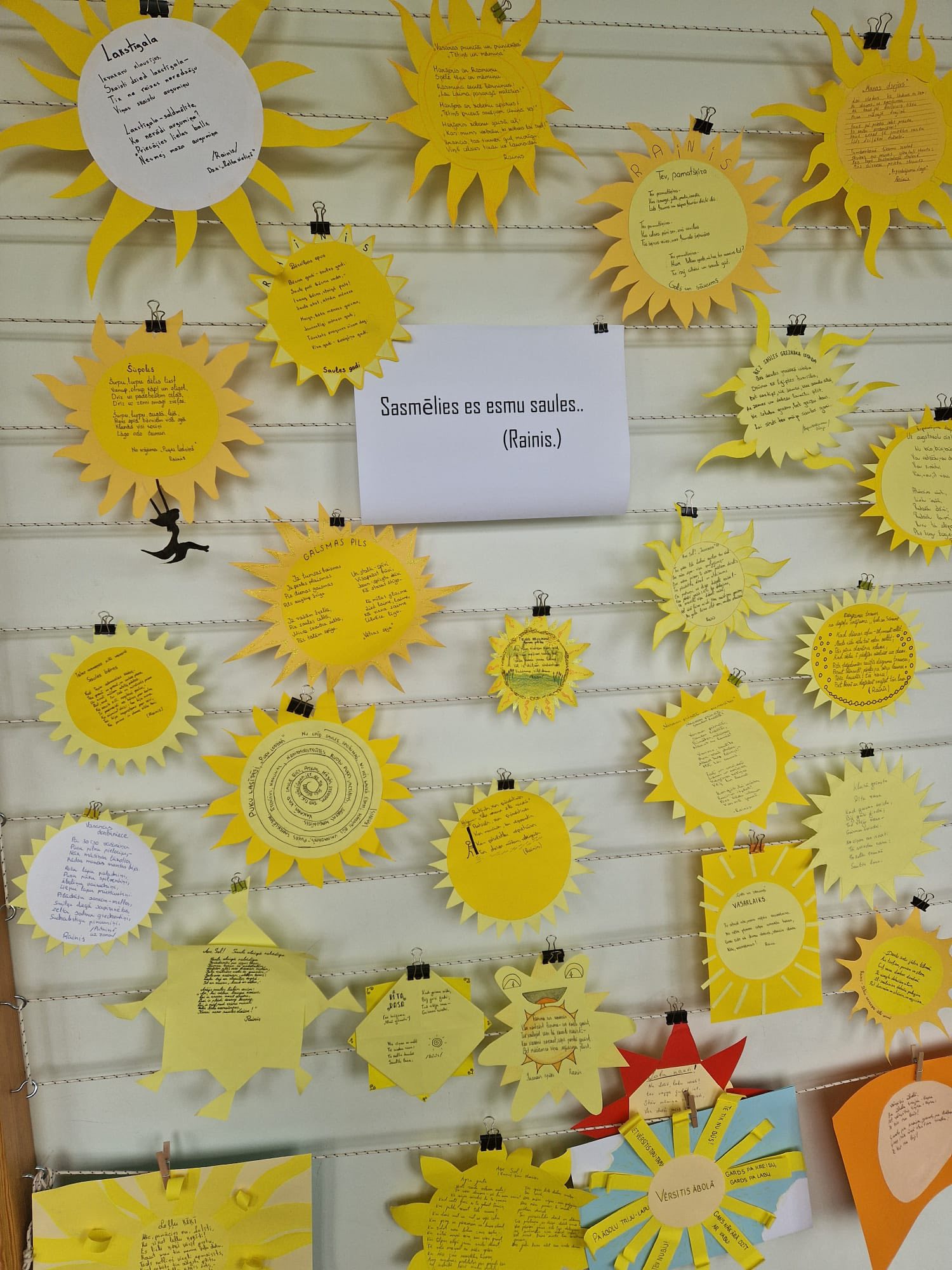 Skolas stendā šonedēļ mirdz Jēkabpils 3.vidusskolas skolēnu radošais darbs – pašu izvēlētā Raiņa dzejoļa vizuālā interpretācija. Darbi tapuši literatūras stundā, godinot novadnieku Raini 160. jubilejā. Saules motīvs – viens no Raiņa daiļrades stūrakmeņiem – iedvesmoja skolēnus, ļaujot dzejai un gaismai saplūst vienotā mākslas valodā. (I.Ūbele) 2.a un 3.a klases skolēni piedalījās Jēkabpils novada Galvenās bibliotēkas Bērnu un jauniešu nodaļas sarīkotajā Dzejas dienu pasākumā – “Burtu balle”. Pasākums notika kopā ar Daci Taurīti. Tika lasīti dzejoļi, vingrots ar burtiem, likti vārdi no burtiem, domātas atskaņas un vārdi, kuri sākas ar noteiktu skaņu. (M.Viļuma, S.Stradiņa) (foto no Jēkabpils novada Galvenās bibliotēkas Bērnu un jauniešu nodaļas facebook konta)