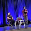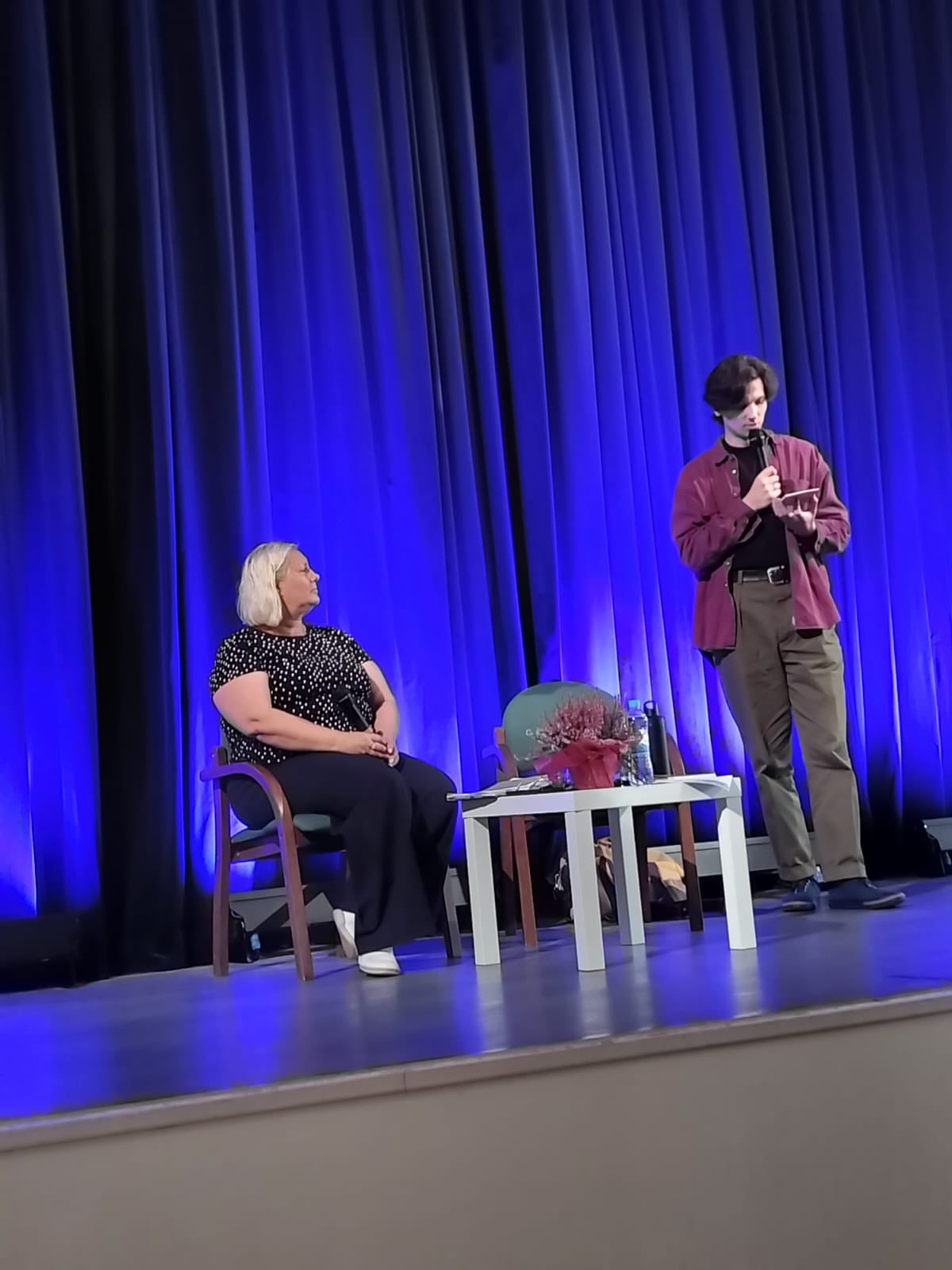 “Lai stāstu noslēgtu, tam nepieciešams sākums: vēl pirms pametu tevi, atrados viņpus kūdras laukiem, viņpus sikspārņu redzes, nostājies starp divām lauvām – sauli un mēnesi” (fragments no R. Ķirķa dzejprozas). Jēkabpils Galvenās bibliotēkas Dzejas dienu pasākumā Jēkabpils 3.vidusskolas jaunieši iepazina Raimonda Ķirķa darbus autora lasījumā, uzdeva papildjautājumus, noslēgumā bija iespēja saņemt individuālu R. Ķirķa autogrāfu un iegūt pašbildi ar dzejnieku. (R.Muižniece)