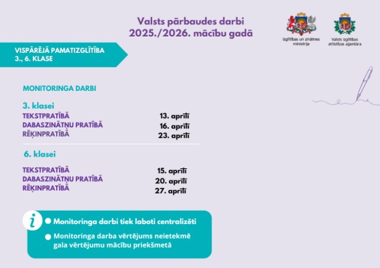 Skolēni, kuri 2023./2024. vai 2024./2025. mācību gadā ir veikuši monitoringa darbu kādā no dabaszinātņu jomas kursiem, 2025./2026. mācību gadā var izvēlēties – kārtot vai nekārtot jauno dabaszinātņu jomas eksāmenu. Ja iepriekš kārtots optimālā līmeņa monitoringa darbs fizikā, ķīmijā, bioloģijā vai vispārīgā līmeņa monitoringa darbs dabaszinātnēs, šajā mācību gadā centralizētais eksāmens minētajos mācību priekšmetos nav obligāti jākārto.