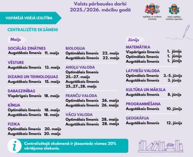 Visas informācijas par eksāmeniem galā. Izmantota informācija no VIAA