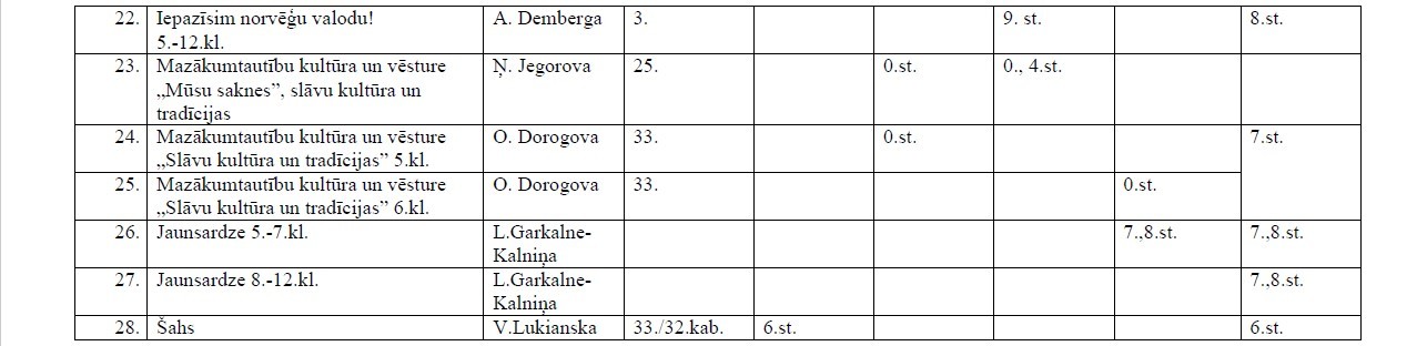 Interešu izglītības programmu norises laiki