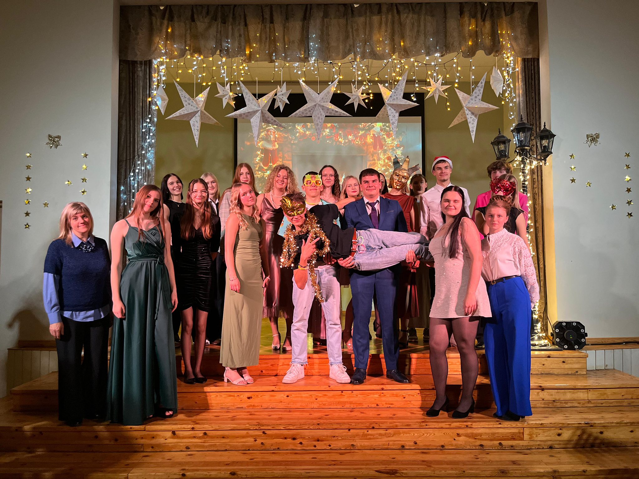 Zālē valdīja mūzika, gaismas un radošas maskas, kas radīja pasaku atmosfēru. Skolēni bija īpaši pacentušies ar tērpiem, pārsteidzot cits citu ar oriģinālām idejām. Pasākuma laikā netrūka ne deju, ne smieklu, ne kopīgu svētku mirkļu. Paldies visiem dalībniekiem un organizatoriem par skaistu un neaizmirstamu Ziemassvētku vakaru! (AIise Audzere)